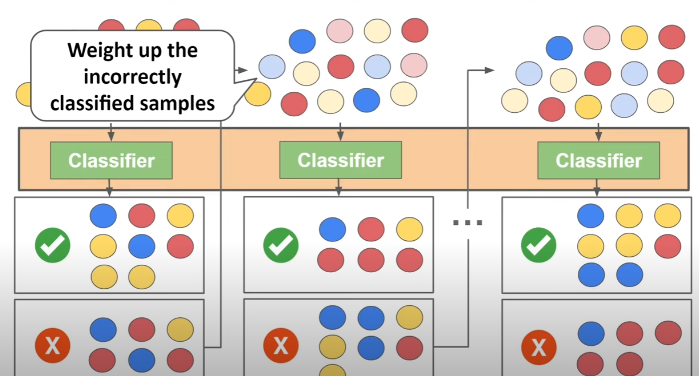 Boosting은 아래와 같이 순차적으로 작동한다.